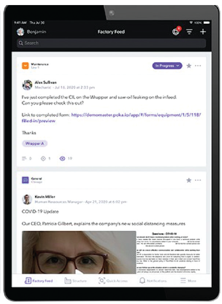 很多公司的工作环境越来越偏远,仍然需要将员工相互连接起来实现卓越的运营,在这种场景下,很多边缘设备都可以通过智能手机和平板电脑实现监控功能。公司可以根据机器自动化和控制组织(OMAC) 的包装机器语言(PackML) 和整体设备效率(OEE)的标准,来监控机器状态和性能。作为最佳实践,边缘设备应能够独立运行,还应连接到更大的集中式运营平台上,以实现端到端的可见性。