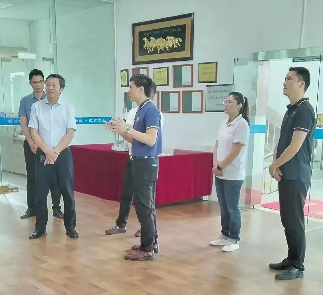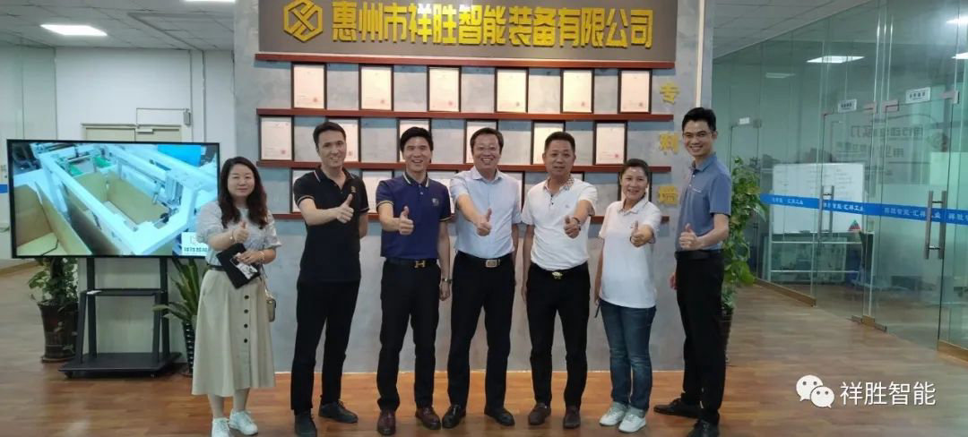 在祥胜智能邓胜威及公司高级管理者的陪同下,惠州市仲恺高新区政协工作办公室领导参观了祥胜智能装备有限公司专利墙、工程设计办公室、设备装配调试车间。惠州市仲恺高新区政协工作办公室领导再次对祥胜智能优秀的技术团队、高端先进的产品设备、精益化生产现场等都给予了高度评价。