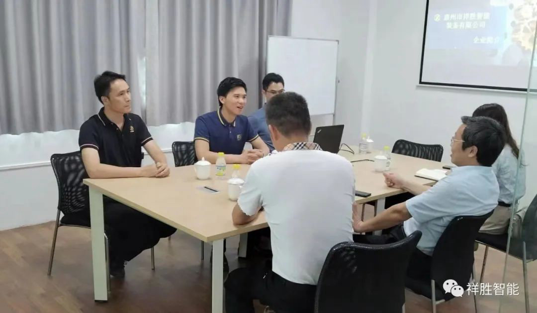 在交流座谈会中,祥胜智能总经理邓胜威带领高层管理人员对惠州市仲恺高新区政协工作办公室领导的到来表示热烈的欢迎。惠州市仲恺高新区政协工作办公室吴钟强副主任表示此行切身感受到祥胜智能优美办公环境、优秀的技术团队、先进的产品设计、及创新意识并给予了高度赞扬。并就公司的发展进行了深入的沟通和指导。座谈会上邓胜威从公司发展历程、核心技术、市场竞争力及发展规划展开介绍,进一步加深各位领导对祥胜智能的认识。