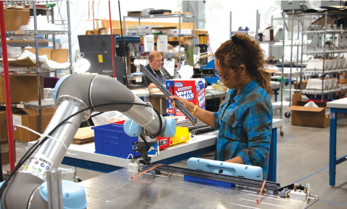 ▎在进行风险评估后,航空航天制造商 Tool Gauge 在塑料装配和分配应用中部署了 UR5 协作机器人以实现人机协作。协作机器人的限力安全系统可确保在遇到障碍物时自动停止运行。
